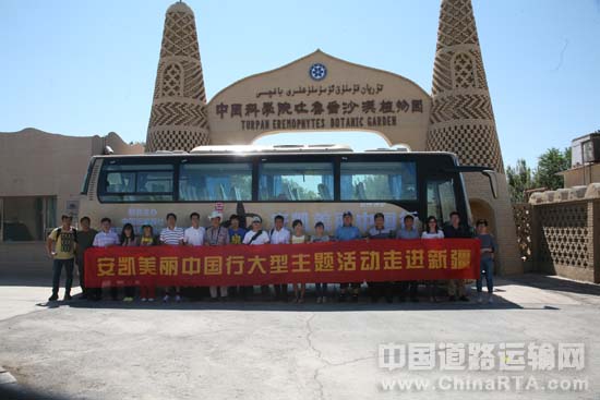 新疆是个好地方,天山南北好风光。2013年8月26日-29日,在瓜果满园的夏末秋初,“安凯美丽中国行”大型主题活动来到我国的西北边疆,走进美丽壮阔的新疆维吾尔自治区。本次“安凯美丽中国行”途径吐鲁番、天山等著名旅游风景区,以“绿色环保”为主题,继续发现新疆生态旅游产业的发展,并在吐鲁番沙漠植物园永久性地认养一块666平方米的胡杨林,以保护当地珍贵物种。本次活动全程采用了绿色无污染的安凯燃气公路客车。