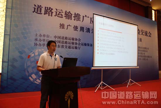 中通客车副总工程师李晨向与会领导专家介绍中通燃气客车技术及发展情况