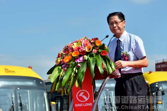 大金龙海外营销总监谢卫国:“大金龙从2000年开启海外市场营销,历经13年的不断耕耘,产品已累计出口到全球86个国家和地区。截止目前,大金龙在海外已组建超过50家授权经销商和服务机构的营销服务网络,也是海外市场布局最广、出口国家最多、外销产品跨度最大的中国客车实力品牌。”