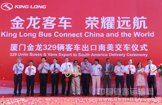 2013年9月9日,“金龙客车 荣耀远航——厦门金龙329辆客车出口南美交车仪式”在厦门现代码头隆重举行。
