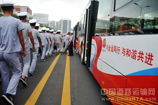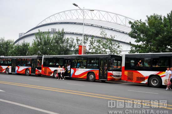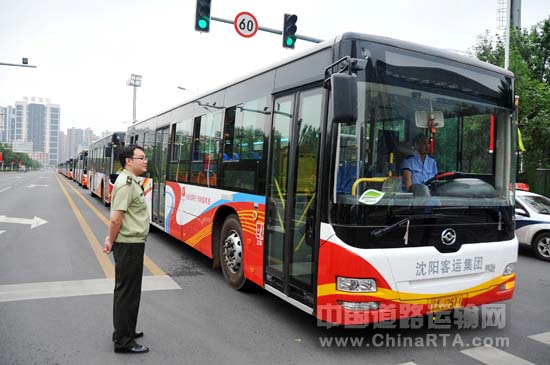 于跃告诉记者:“本届全运会,沈阳各大公交公司共计出动约500多台公交客车,负责承担全运会开、闭幕式及比赛场馆间的运送演员及观众工作,其中,黄海客车所占比例约为80%,是此次全运会车辆的主要运力。如果加上各分赛场的服务用车,黄海参与其中的服务车辆超过了5000多台。”