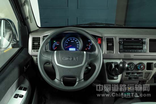 新大海狮内饰布置清新、现代,功能件布局合理,车厢设计宽敞,更方便乘坐和进出。整车布置时采取多项先进的NVH工程技术,将行车时的噪音和所受到的震荡减至最低,打造出整车安静、舒适、安全的商务空间。新大海狮的内饰设计走清新路线,突出实用性。驾驶区仪表板做工简洁明了,电控元件触手可及。转向盘和变速器都较易操控。6档变速器的档位非常清晰,在试驾过程中没有出现过找不到档位影响操作的情况发生。
