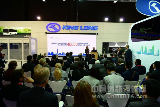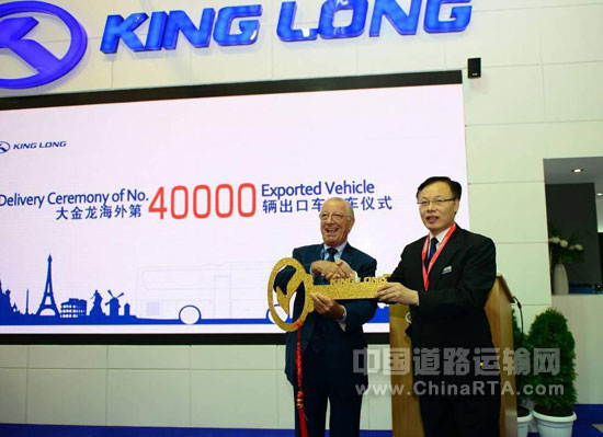 2013年10月,中国客车领军企业大金龙第五次参加BUSWORLD欧洲展,推出三款精品公路客车均达到欧六排放标准,紧跟欧洲客车市场发展步伐,也显示了大金龙稳步拓展欧盟市场的决心。展会上,大金龙还举行了海外出口车第40000辆交车仪式,向世界展示大金龙海外拓展取得的成就,标志着中国客车制造工艺向世界一流水平迈进又跨出了重要的一步。