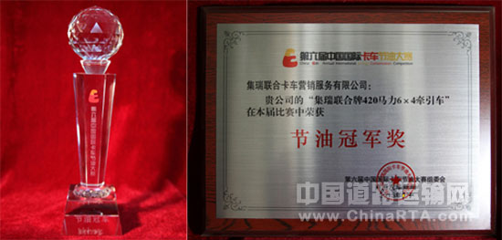 2013年10月23日,第六届中国国际卡车节油大赛颁奖典礼在北京举行。首次组队参赛的联合卡车,在高手如云的420马力6*4牵引车组比赛中脱颖而出,凭借其深厚的技术底蕴成功折桂,荣获节油冠军奖;同时,在LNG车型比拼中,联合卡车LNG车型依靠其在整体结构上的巨大优势,一举将结构优化奖收入囊中。至此联合卡车参赛的两个组别都成功取得大奖,成为本届比赛的最大赢家。
