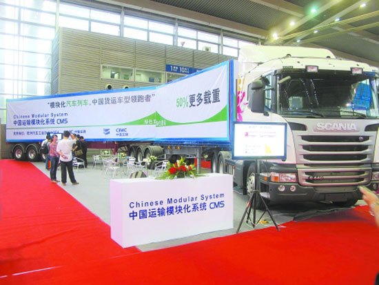 “CMS(Chinese Modular System,中国运输模块化系统)是从EMS延伸来的。我们把EMS演变成CMS,因为中国需要高效运输、绿色运输,模块化车辆结构可以很好地实现这个目标。”冯峰说。模块化运输承载能力强、污染气体排放少、燃油经济性好,由于配置合理,多轴布置提高了整车制动效能,减少了每个轴对路面的重压,使整车运行更安全,是实现绿色运输最好的解决方案。