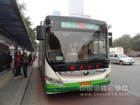 据保定市公交总公司总经理助理王立业介绍,此前保定公交车以柴油车为主,燃料消耗量大,环保性差。为打造低碳保定,保定市公交总公司在今年3月开始批量引入宇通ZK6120CHEVG1混合动力公交车298辆,加快淘汰现有柴油车,引入力度之大在国内公交行业也属领先。这些新型气电混合动力公交车是国家绿色环保“十城千辆”试点城市投放的车型,虽然保定市不属于“十城千辆”试点城市,但经积极争取政策,保定公交成为使用该种车型数量最多的公交企业。随着宇通所有新能源公交在4月投入运营,保定市区国有公交线路实现了全部清洁能源车型的转换。据保定公交内部的初步测算,所有车辆更换完毕后,每年可减排有害气体6000余吨。