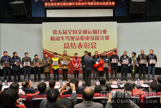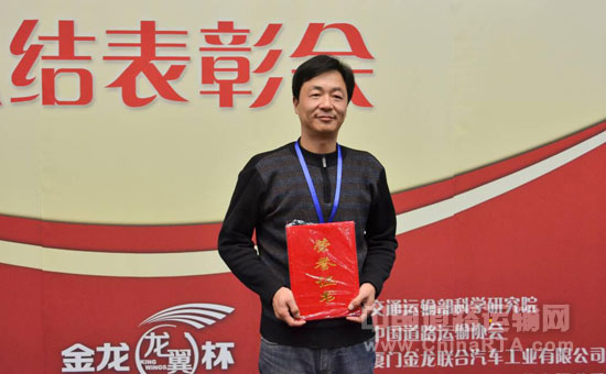 驾驶精英展风采,会师京城竞风流。经过两天紧张激烈的角逐,2013年11月26日下午,全国交通运输行业“金龙龙翼杯”机动车驾驶员职业技能竞赛(以下简称“金龙龙翼杯”)在北京汽车博物馆圆满落下帷幕。安徽省合肥客运公司驾驶员施健从来自全国的50位驾驶精英中胜出,获得“金龙龙翼杯”个人一等奖,并将报请全国总工会授予“全国五一劳动奖章”。大赛组委会名誉主任、交通运输部副部长冯正霖为其颁奖。