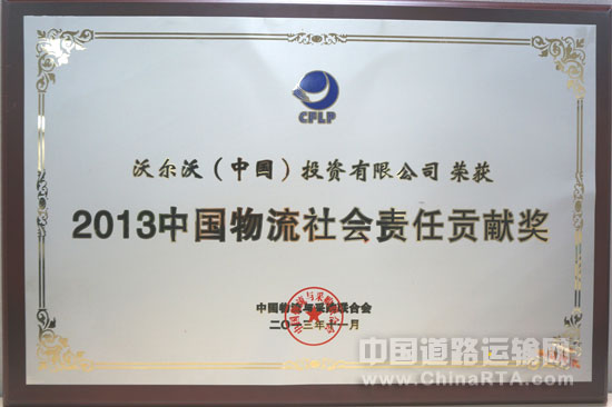 沃尔沃卡车荣获2013中国物流社会责任贡献奖