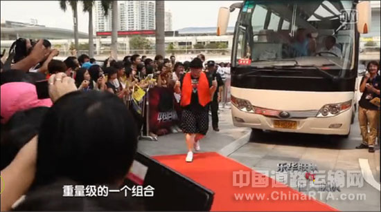 乐华娱乐的80后CEO杜华一下车就惊艳全场,可谓是乐华娱乐的最佳形象代言。而旁边的宇通客车凭借美观大气的外观、舒适安全的性能,成为明星背后的明星。