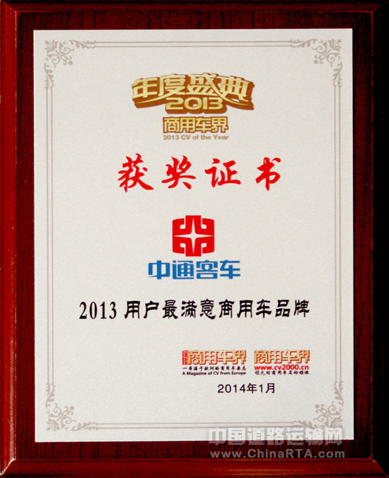 据悉,“用户满意商用车品牌”由《商用车界》社发起,经过数月时间,国内近11万受访者为自己满意的商用车品牌投出了宝贵的一票。其中整车调查项目近10余项,并建立了科学的用户满意度评价体系。通过本次调查,主办方掌握了用户们最关注的品牌因素,充分了解了商用车用户对不同商用车品牌的价值判断。本次调查活动中的被调查对象包括司机、运输管理人员(运管局)、企业管理人员(物流、公交、客运企业人员等)、用户(乘客、企业等)、汽车专业院校的学生、老师等,其中司机占据上80%以上被访者,这是本次调查中最为核心的一点。 在此次盛典上,中通客车再次被授予“用户满意商用车品牌”,这已是中通客车连续第三年获此殊荣。