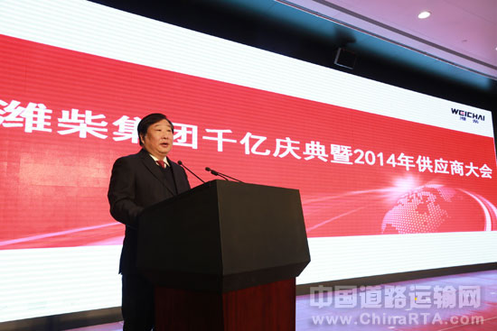 潍柴集团千亿庆典在2014年商务年会期间举办,庆典上隆重宣布潍柴集团2013年销售收入达1003.6亿元。潍柴集团董事长谭旭光在庆典仪式上讲话,希望广大合作伙伴和潍柴一道,携手并肩,挑战未来,共同为梦想而奋斗。
