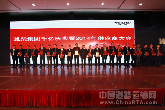 从2004到2013,潍柴用9年的时间,从100亿跨越到1000亿。这一辉煌成就的取得,不仅凝结了潍柴全体干部员工的心血与汗水,也得益于潍柴集团产业链上下游合作伙伴的鼎力合作。潍柴集团董事长谭旭光说,过去,潍柴实现了跨越式发展,创造了一个老国企辉煌腾飞的奇迹,这离不开广大合作伙伴与我们携手并肩的共同努力;未来,我们要向更高的目标迈进,依然需要广大合作伙伴与我们一路同行。