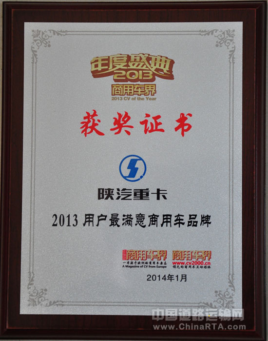 陕汽重卡荣膺“2013用户最满意商用车品牌”大奖(图文)