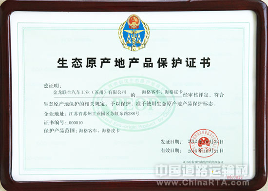 海格客车和海格皮卡获生态原产地证书