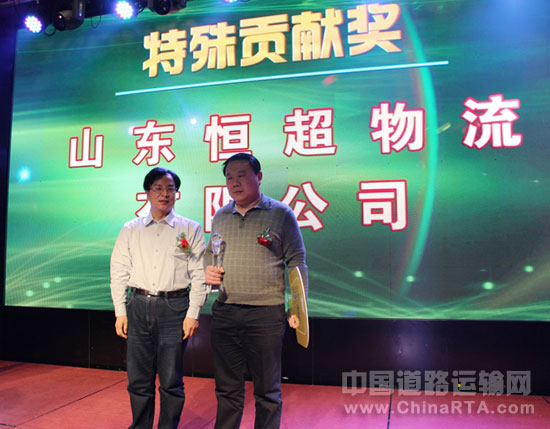 陕重汽销售公司副总经理刘翔韬为获得特殊贡献经销商颁奖