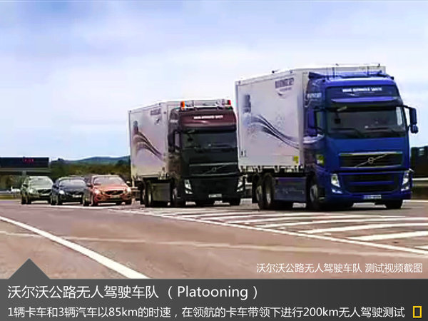 卡车主要用于运输业,如何提高运输效率和安全性一直是研发卡车重要课题,对此尔沃卡车道路与产品安全总监卡尔·约翰·阿姆韦斯特表示:“对于驾驶环境的专注是沃尔沃卡车研发工作非常核心的部分。”沃尔沃集团研发的无人驾驶技术则将帮助其增强交通安全,提高运输效率。该项技术的应用是由一辆卡车作为领队,后方车辆通过精密的传感器和通信设备,对与前方车辆之间的车距、速度以及方向等进行实时测量,最终可将驾驶员从驾驶中解放出来。而领队车辆的速度将决定整个车队行驶的快慢,而后方车辆上的人可以从驾驶中完全解放出来。