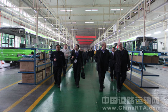 代表团一行首先参观了恒通客车展厅,对恒通支线公交都市领航、新威龙公路车等产生了浓厚的兴趣,郑先国总经理就以上产品进行了疑问解答,并详细介绍了恒通燃气客车技术,代表团一行对恒通燃气客车所取得的成果和市场保有量表示赞赏。随后,代表团一行在恒通总装生产线对客车组装的各个环节、工艺水平进行了考察和沟通。