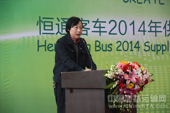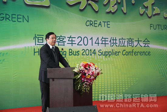会上,恒通客车总经理助理赵勇致欢迎辞,代表恒通客车全体员工对各位供应商朋友在过去一年中给予的理解与支持表示衷心的感谢,总工程师万昶就恒通2014年产品品质和产品技术提升发表了讲话。随后,东风襄阳旅行车有限公司总经理李争荣、广西玉柴机器股份有限公司总经理助理高强分别上台发言,回顾了与恒通的合作历史,并对恒通提出了新的期望。最后,恒通客车总经理郑先国畅谈了公司对绿色理念的追求和公司未来发展前景,并对供应商提出共创绿色公交都市的期许。