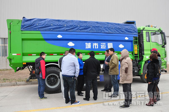 郑州渣土车行业领导查看陕汽渣土车并提问