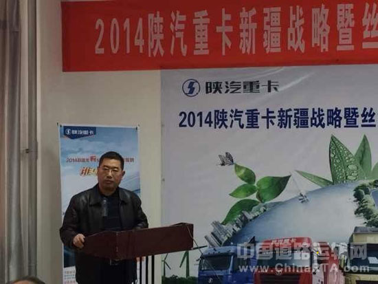 3月17日,以“点燃激情 主动出击 创新蜕变 再续辉煌”为主题的2014陕汽重卡新疆战略暨丝绸之路新型绿色经济带启动会在乌鲁木齐隆重举行,陕汽控股总经理袁宏明、陕汽控股副总经理郝晓乾、陕西重汽副总经理兼进出口公司总经理王刚、陕西重汽销售公司副总经理刘翔韬、陕西重汽 副总经济师兼运营管理部部长舒周生、陕汽新疆工厂总经理符仪喆、陕汽新疆办事处主任王军以及新疆地区的经销商、服务商、改装厂和其它合作单位的领导、嘉宾近百人出席。