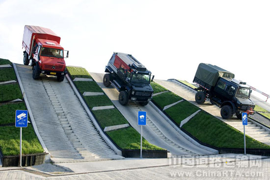 此次卡车主题公园活动将在位于天津保税区内的国内唯一一家专业特种车试车场举办,试车场集中了各种复杂路面和地形,包括坡度45度的楼梯爬坡,提升率110%的斜边通道,深1.2米的涉水路面等。届时,奔驰卡车驾驶学院的培训专家将提供一对一驾驶指导,与众多卡车爱好者一道尽享驾驶乐趣,挑战驾驶极限。