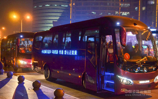 小龙威项目技术人员向记者介绍,执行公益巡游的小龙威在车辆动力、安全、节能以及主动安全技术上都有出色表现,是国内中巴产品的佼佼者。在环岛巡游中惹人关注的彩色LED屏不仅可以显示文字,还可以播放图片、视频等信息,此举打破传统中巴车对车身单一设计的框架。作为行业内唯一全面满足39+1+1高二等级的中巴客车,小龙威出色的悬架设计不仅使其运行稳固可靠,也让行李舱布局更为合理化,在从容应对多种路况的同时,整车的外观也尽显高端大气。