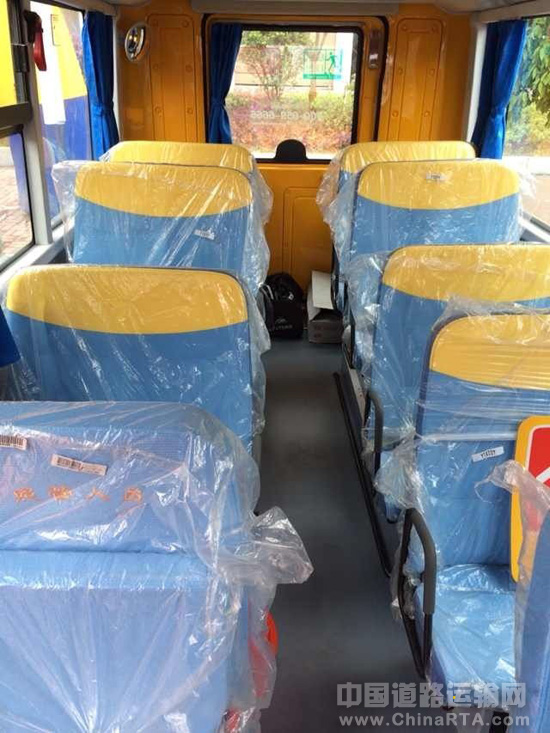 在乘车安全方面,宇通校车的设计也很周到。针对山地行车容易出现急刹车的情况,校车座椅全部采用软性材料,如果遇到车辆急刹车,学生头部与前排座椅相接触时将起到缓冲作用。另外,每个乘员座椅均配有两点式安全带,能够在颠簸路段行车时起到安全保护作用。