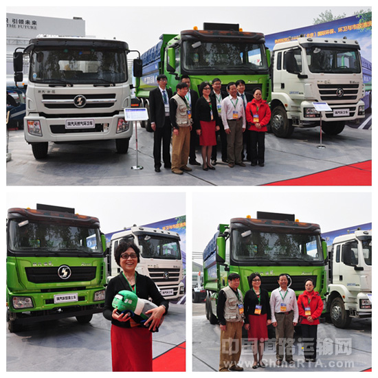 展会上,许多客商来到陕汽重卡展车前,询问其配置、价格以及天然气作为能源的相关问题,纷纷与陕汽重卡合影。