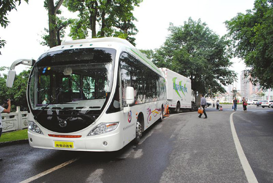 据介绍,该车充电就像加油、加气一样,而且只需 10分钟,是目前国际市场上唯一实现了快速充放电、有超长使用寿命、可商业化实际运营的纯电动客车。