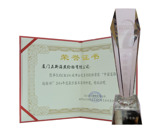 本次,正新轮胎携城市公交明星产品CR100及专为不同需求城乡客运车辆设计的5款轮胎产品参展,CR100作为参展主推产品,众多客户青睐。在展会同期举办的“中国道路运输杯”颁奖典礼上,CR100斩获“2014年度最佳客车零部件奖”。