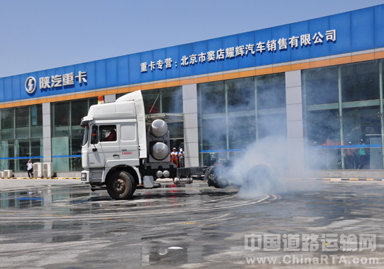 在窦店耀辉陕汽重卡4S店前,陕汽天然气危化品6X4运输车的精彩特技体验,赢得渣土车用户的阵阵掌声。单车漂移180°旋转、360°定点漂移、无人定点漂移,天然气重卡+渣土车车队漂移以及烧胎表演,一个个惊险的动作,一次次短暂的休整,一圈圈的穿梭,让所有在场嘉宾、客户拍手叫绝、惊呼、喝彩,彰显了陕汽渣土车优异的产品性能,得到了观众的高度认可。大篷车互动路演,通过360°绕车讲解、现场试乘试驾、技术答疑、微信互动、有奖问答等多个环节,活动现场人头攒动,气氛十分热烈,现场客户对陕汽渣土车有了更深层次的理解与认识。值得一提的是,陕汽重卡大篷车互动路演与卡车特技体验营首次实现了现场联动。