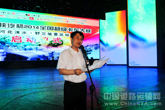 在启动仪式上全国超级卡车大赛组委会副秘书长张晓斌告诉大家:全国超级卡车大赛自2003年创办之日起,至今已走过了十二个年头。从萌芽、发展到变革,越过了无数坎坷,尤其是在2009年与陕汽集团的成功合作,完成了从场地竞技到场地越野的完美的蜕变。在未来的几天内,来自全国各地的十支车队齐聚野三坡景区,在风景如画的拒马河河滩上激情上演重卡越野大赛。在有着起伏路、双驼峰、深、浅水坑等极限障碍的赛道上,四驱陕汽德龙F3000赛车时而腾空跃起,时而“蜿蜒盘旋”,给现场观众带来一场别开生面的视觉盛宴。为了能更好的让观众到现场观赛,本次赛事特意选择在端午小长假期间举办,并于6月3日14点整将由CCTV-5进行现场直播。
