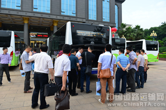 在分享了各自的经验后,与会嘉宾参观了福田欧辉18米LNG公交车及最新研发的插电式混合动力城市客车,据悉,插电式混合动力城市客车已经在长沙批量投入运营,示范效果良好,预计今年将会有更多市民享受到“绿色出行”的福利。