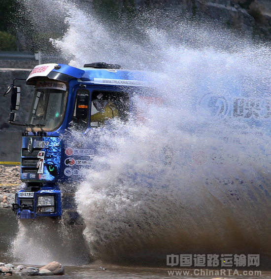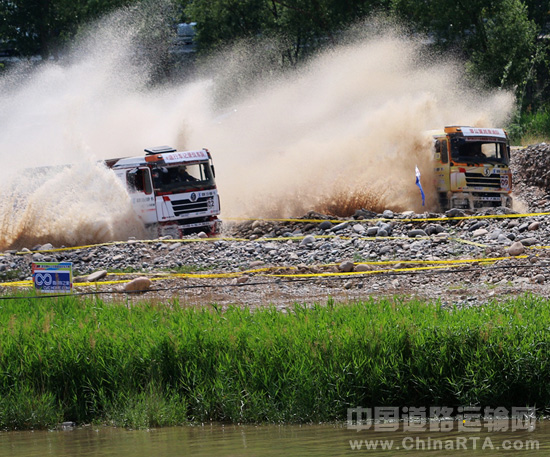 河道赛道水深1.5米,赛手们驾驶的陕汽重卡配以潍柴发动机、法士特变速箱、汉德加强车桥等超强配置,在本次比赛中展现出卓越的动力性、优良的的涉水性能和操控稳定性,不仅实现了赛道设计的突破,也增加了越野赛的观赏性。
