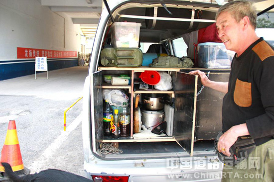 “中国梦 我的梦 强国梦”、“踏雪山 走天路 游青藏”,在“夕阳行者”的那辆爱车上,车身两侧的标语显示这位64岁南通老汉的雄心和梦想。这位“夕阳行者”驾一辆改装成小房车的开瑞优优加长版,连续两年独闯天涯。