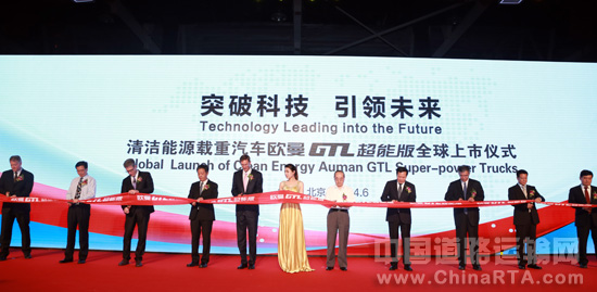 各位领导为清洁能源载重汽车欧曼GTL超能版全球上市仪式剪彩
