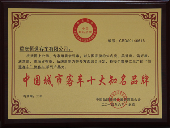中国品牌建设发展管理联合会是从事企业品牌认证服务的专业性社团,联合会在全国范围内开展“中国城市客车十大知名品牌”评选活动,旨在通过权威媒体的引导和影响,带动广大民众参与品牌的监督和评选,在全社会营造推动优质品牌的健康发展。正因恒通客车长期以来在提升品牌知名度和可信度、完善产品品质和服务上的不懈努力,本次评选赢得了广大用户、专家评委的一致好评,一举斩获两项殊荣。