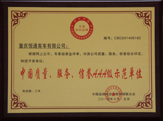 近日,恒通客车荣获了中国品牌建设发展管理联合会颁发的“中国城市客车十大知名品牌”和“中国质量、服务、信誉AAA级示范单位”两大荣誉称号。联合会授予恒通此两项殊荣,是对恒通客车不断增强的品牌影响力、品质服务等综合实力的充分肯定。