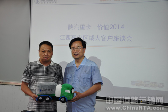 随后,双方进行了真诚的沟通与交流。江西高安区域大客户们就关心的产品配置与价格、服务保障、加气站的建设等一系列问题进行了座谈交流,正如江西樟树昌隆公司杜总所说:“在江西重卡市场,素有‘江西市场看南昌,南昌市场看高安’的一种说法。可见,虽然作为一个县级市,高安在重卡市场有着很重要的地位。江西高安是重要的物流集散地,牵引车从江浙运输鞋、衣服等百货用品到高安到南昌,形成了南昌到江浙典型的运输线路。这些车型一般拥有自重轻、速比小、驾驶室豪华、经济性较高等特点,为用户带来可观的经济效益。今天听了陕汽牵引车的介绍,我觉得陕汽轻量化牵引车,非常适合这一市场,有非常大的发展空间,加上陕汽是具有强烈社会责任感的企业,是行业率先提出“服务型制造”新的商业模式,为客户提供覆盖产品全生命周期的服务,这些都是其他重卡企业不具备的,我们希望陕汽的产品越做越细,越做越好,我们物流企业愿意与陕汽一起,为中国物流运输贡献一份力量。”
