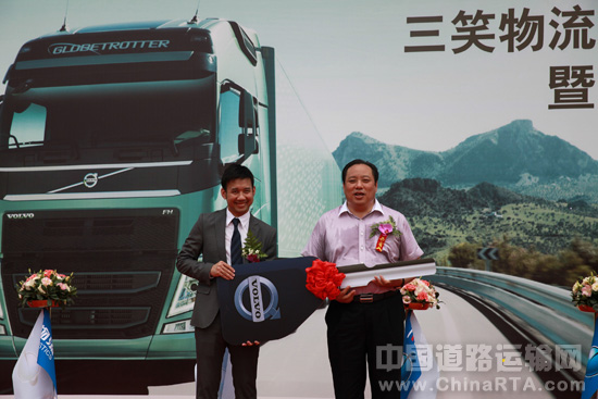 沃尔沃卡车中国区市场与销售副总裁钟佑皓先生将钥匙交付三笑物流董事长周志礼先生