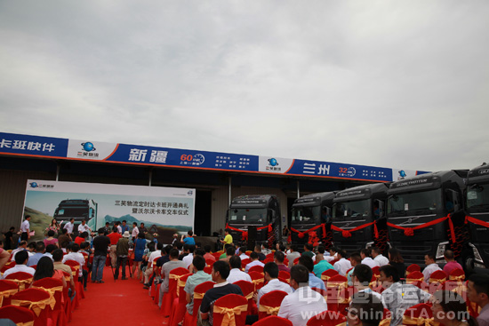 三笑物流定时达卡班开通庆典暨沃尔沃卡车交车仪式在三笑物流园隆重举办。此次三笑物流购买的8辆沃尔沃全新FH460 62T高配牵引车将正式用于上海-兰州、上海-内蒙古定时达卡班新线。