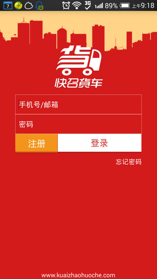 首先,小编通过APPstore网站下载了免费的“快召货车”软件并安装。打开“快召货车”的主页面进行注册。