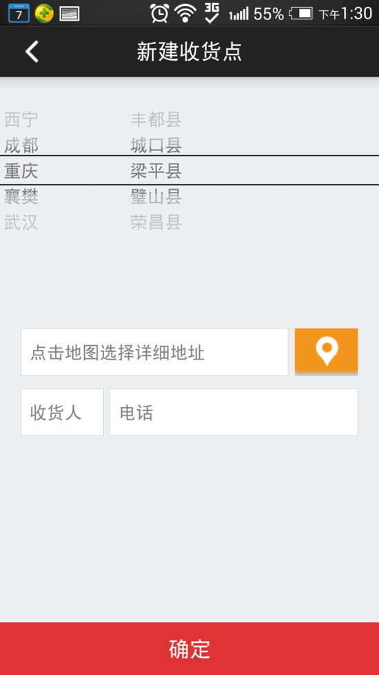 完成注册以后,进入下单页面的第一步:确认发货地点进行下单操作。