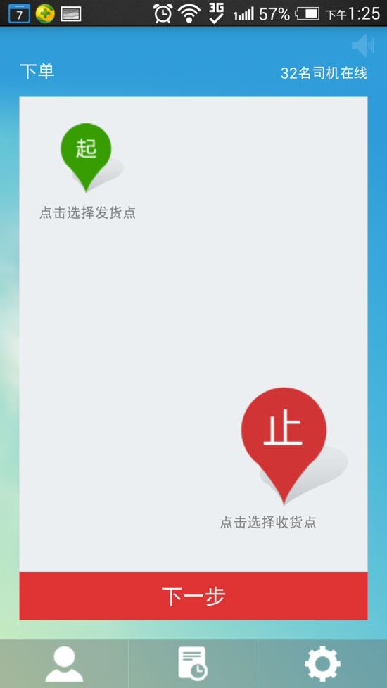 接着进行下单的第二步操作: 确定收货地点。然后,第三步:确定相关条件(发货时间、货物类型、车辆类型、其它条件等);第四步确定发布价格。