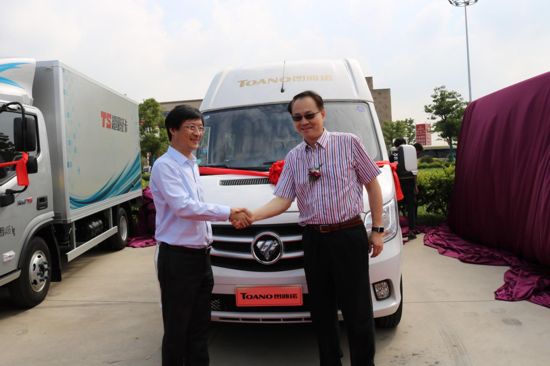 福田商用汽车集团商务汽车业务总监潘林波先生与杭州快马网络快递科技有限公司总经理周宏先生代表双方签约
