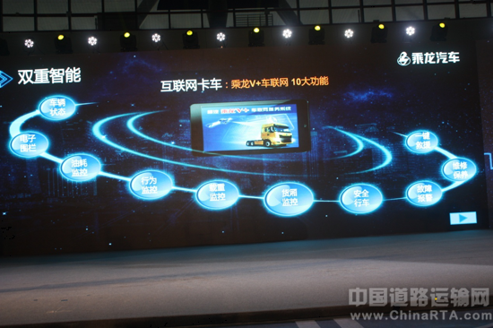 在乘龙T7上市活动现场,最让人感到兴奋的,就是智能卡车技术的讲解环节,从远程操控卡车的启动,到辅助驾驶设备的使用,再到“阵列行驶”智能驾驶技术的提出,展现了大量智能技术的运用。