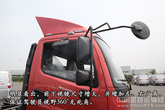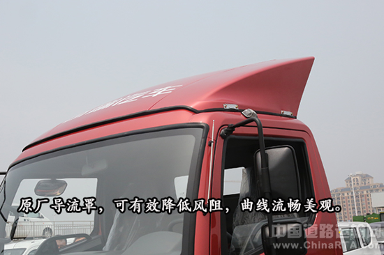 整体来看,驾驶室上方的导流罩,来自于开瑞绿卡原厂匹配,经过专业的研发人员计算设计,可有效降低风阻,同时也像是车辆的一顶装饰帽子,美观大方。