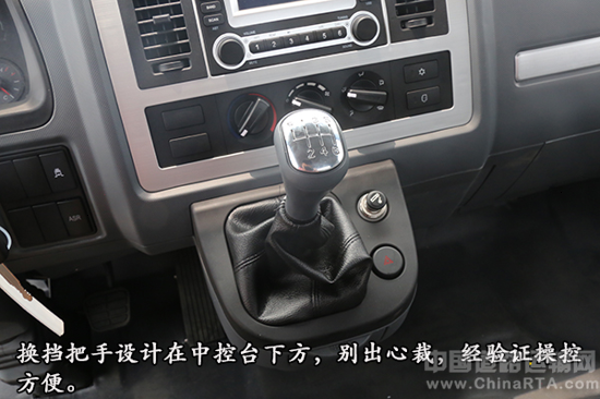 值得关注的是,开瑞绿卡的档杆设计别出心裁,放在了中控台下方,经过实际操控中发现,这种设计与方向盘距离近,操作起来较为方便。并且,从驾驶室内侧面来看,主副驾驶座椅间通过性很好,可利用空间大。
