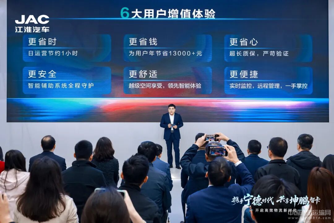 深耕行业六十一载,江淮1卡始终坚持“关心车更关心人”的品牌理念,持续强化技术创新,坚持自主研发与开放合作相结合,此次携手电池行业巨头宁德时代,重磅推出高效物流车领先品牌——坤鹏ET9。“坤鹏”翱翔九天高, 羽翼磅礴气势豪。作为打破“商用车新能源化性能瓶颈”的最新成果,坤鹏ET9将在新能源商用车的发展浪潮中阔步向前,引领绿色高效智慧物流新时代。