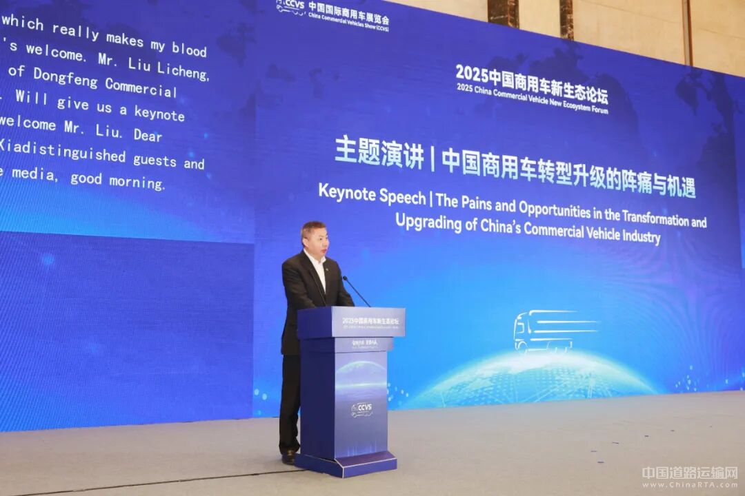 在11月11日“智链全球 聚势共赢”2025中国商用车新生态论坛上,东风商用车总经理刘利成以《拥抱变化 创新转型 合作共赢》为题作主题演讲。